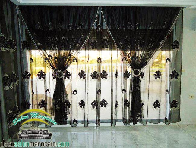 Rideau Double Voilage Noir Et Blanc
